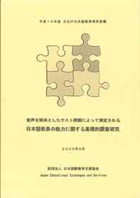 日本語教育能力検定試験の「聴解試験」に的を絞り,この科目が日本語教員を志望する受験者の能力をどのように測定してきたかを分析し,その結果をもとに,音声を媒体としたテストの改善の方向性や可能性を示した報告書(文化庁日本語教育研究委嘱)。